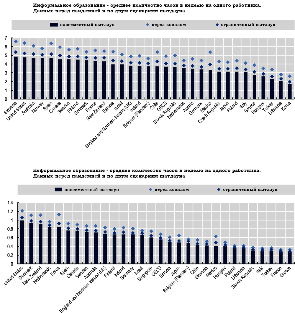 Примечание. Часы обучения по сценариям шатдауна учитывают возможность удаленной работы на уровне страны. Страны отсортированы в порядке убывания количества часов обучения в соответствии со сценарием повсеместного шатдауна.