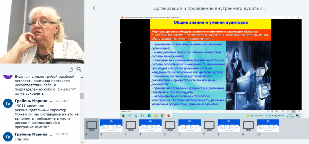 8-9 июля с помощью технологий сервиса  электронного образования  Cyber Learn Systems  был проведен онлайн-семинар  «Требования стандарта ISO 9001:2015 /СТБ ISO 9001-2015. Действия в отношении рисков и оценки возможностей в контексте совершенствования риск-ориентированного менеджмента организации. Организация и проведение внутреннего аудита системы менеджмента качества (ISO 9001:2015, ISO 19011:2018/ СТБ ISO 9001-2015, ГОСТ ISO 19011-2013)».