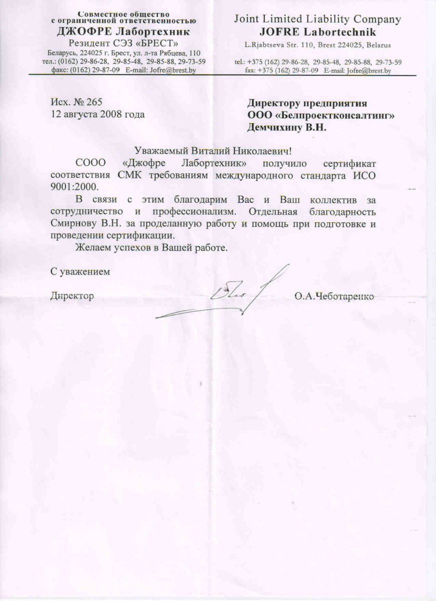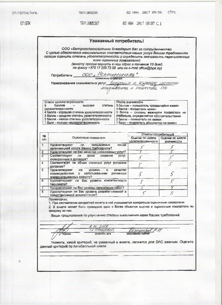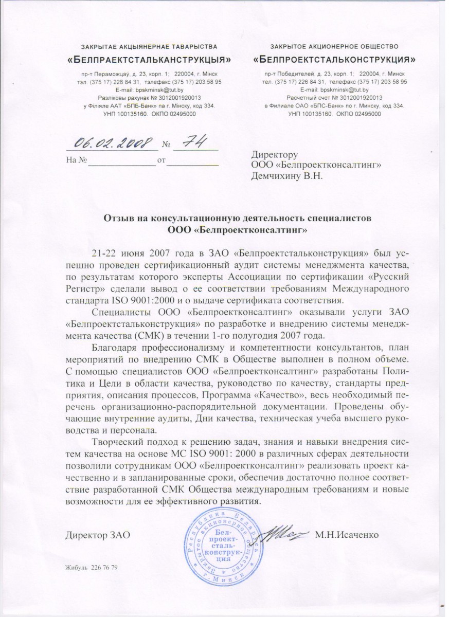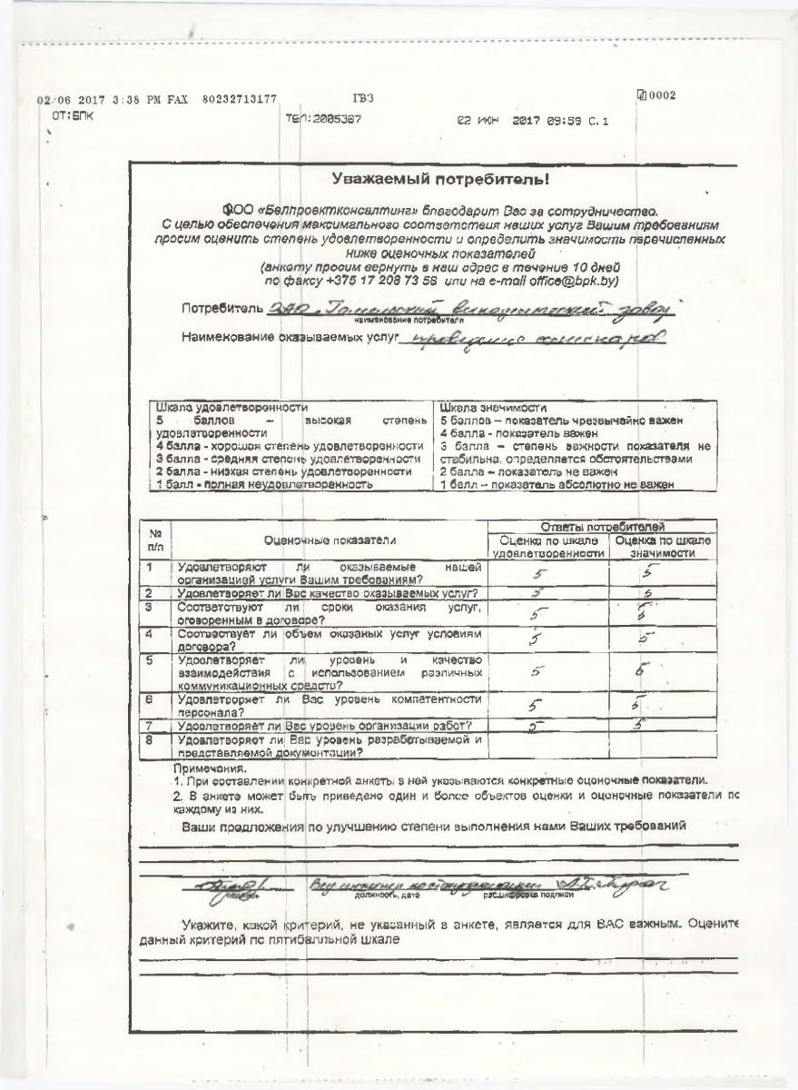 Благодарим ООО «Белпроектконсалтинг», надеемся на дальнейшее сотрудничество!
