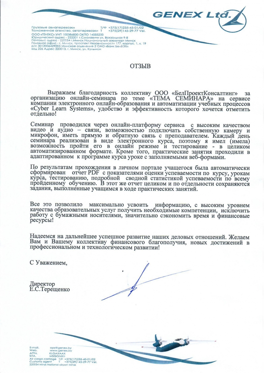 С уважением, директор ООО "Генекс" Е.С. Терещенко
